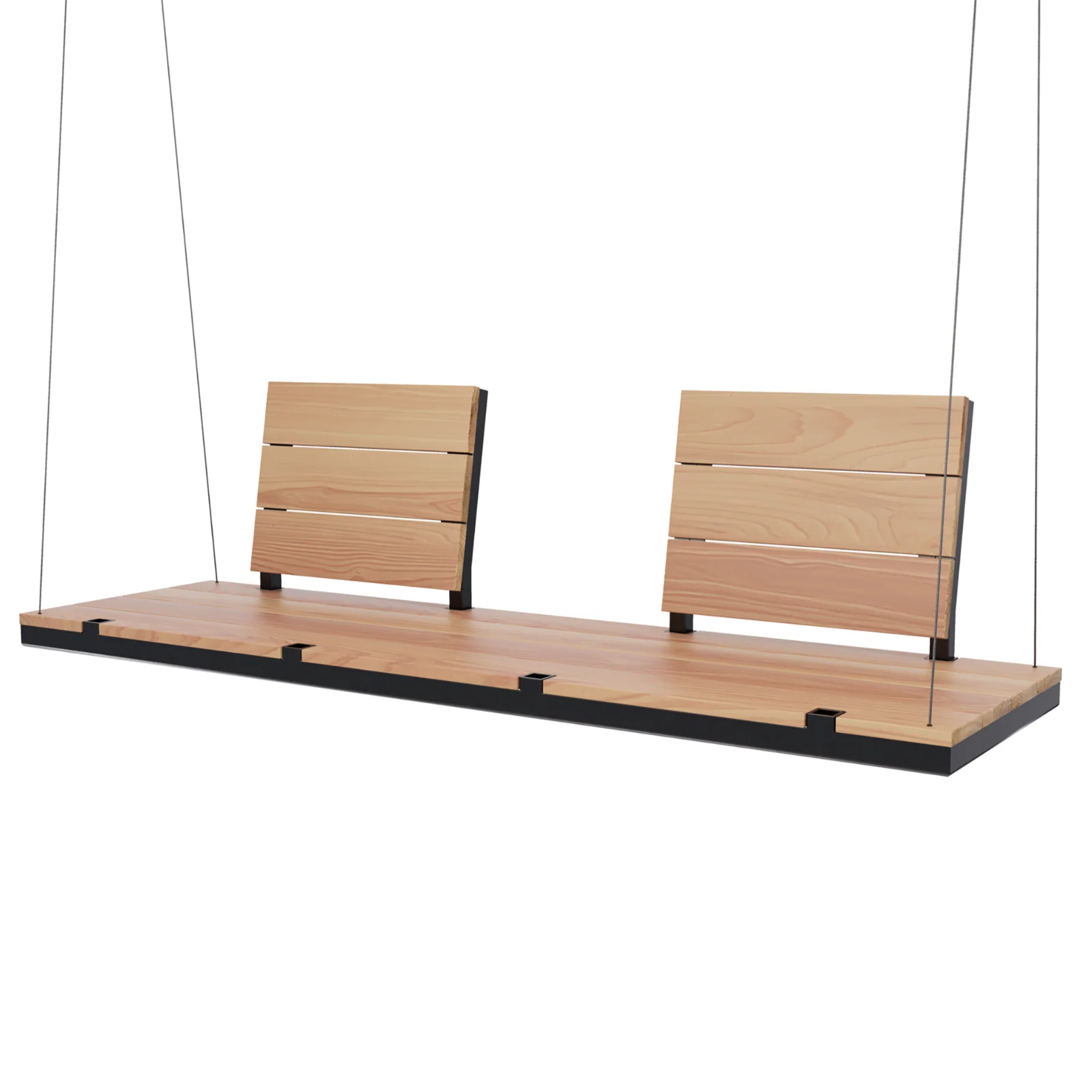 The Organic Swing frame is crafted from high quality steel and finished in a durable, outdoor grade zero VOC powder coat. The slatted bench deck and seatbacks are made from sustainably harvested cypress or walnut wood, exhibiting a natural beauty, remarkable strength, and resistance to weather. The Organic Swing is suspended from corrosion-resistant wire rope for a distinctively modern look and added strength.